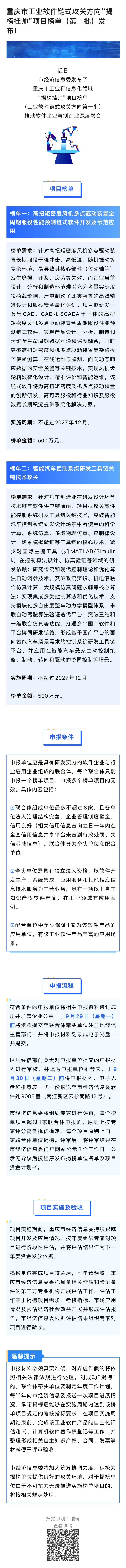 关于公布重庆市工业和信息化领域“揭榜挂帅”项目榜单(工业软件链式攻关方向第一批)的通知
